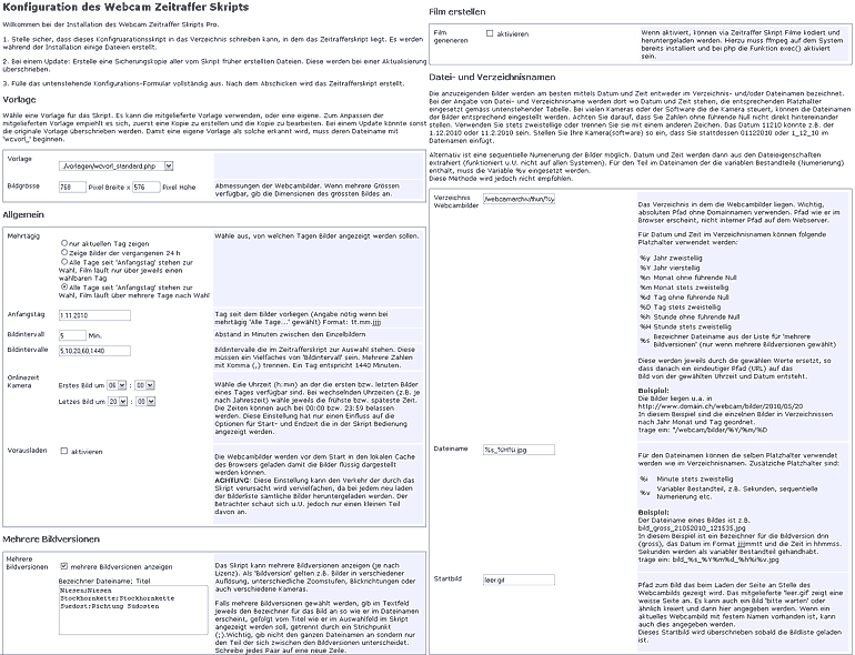 Weitere Informationen zum Webcam Zeitraffer Skript Pro